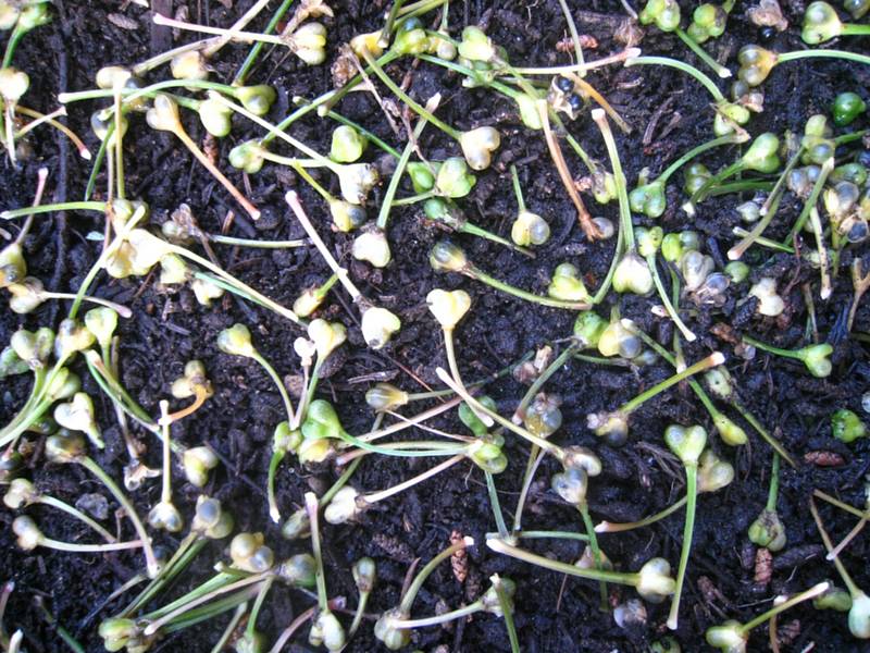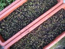 ギョウジャニンニク:種まきから収穫まで ギョウジャニンニク種 2022.09.16 上部の黒い種が1、2個見えたら採ります。 この状態で2、3日水に浸けておきます。 肥料分のない土にこの様に敷き詰め上から土を2~3ミリ被せます。 あとは来年の春まで水を切らさないように管理します。※肥料分のある土に植えると極端に発芽率が下がります。 奥から2年目、3年目です。この位になったら3株位まとめて庭に植えたり、プランタに植えたりします。 種まき後3、4年目で食べられる様になります。 6月には花が咲くので急速に苗を増やすことが出来ます。