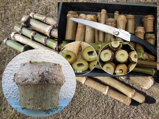 暖かい部屋で節から芽が出るまで来春まで保管します。