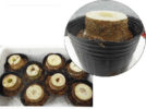 上下を間違わないようにポリポットに茎の底と周りに湿らせたミズゴケをしっかり詰め込みます。(ミズゴケは節のした・節を出す)