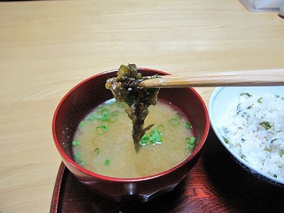 アオサだ。アオサの味噌汁だ。おいしい。