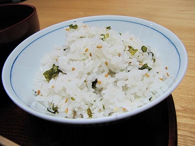 素材の味がわかるよう、塩だけで味をつけたわかめ(?)ごはん。