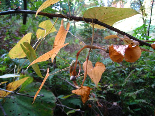 道具がないので園芸用のシャベルを持って出かけました。ムカゴの付いている蔦を辿って地面をみたら同じ場所に2本伸びています。掘り始めてすぐに硬いかなり大きな根に当たりました。でここは避けて反対側から掘り進めます。道具が小さいのでかなりかかりそうです。30センチばかり掘ったところに横に根が張って作業が進みません。そこでこの根を切る道具と大きなスコップを持って来ることにし作業を中断しました。あとは午後にします。少しの時間でしたがジネンジョ堀りにはどんな道具が必要かが大体わかりました。それにしてもしんどいです。