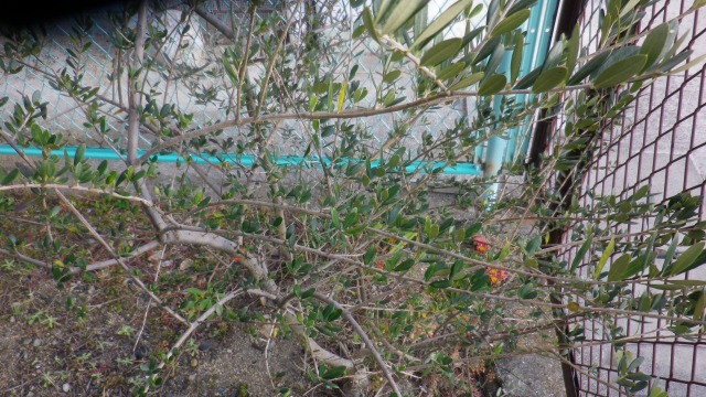 写真の木は実生のオリーブで樹齢20年以上です。そして、毎年、ほんの少し実をつけます。小豆島には、同様に何らかの理由でそのまま育てられている実生の木がありますが、ほぼ例外なく実は、ほんの少ししかつけません。