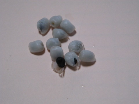 中央の白い部分をめくると黒い種が出てきます。