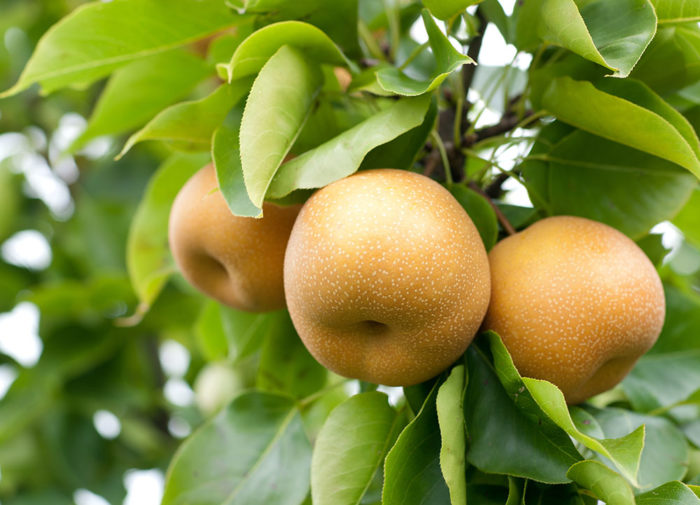 高木に分類されていますが、剪定によって2m程度に抑えて管理するとよいでしょう。4月下旬頃に多数の花が咲き、収穫期は9月中旬〜10月中旬頃です。授粉樹が必要なので異なる品種を2本以上植え、人工授粉をして確実に実らせます。一つの花房に7〜8個の花をつけますが、摘果して最終的に1個のみ残します。病気になりやすいので袋かけをしましょう。日当たりのよい場所を選び、水はけのよい肥沃な土壌に植え付けます。乾燥がやや苦手です。鉢栽培する場合は、8〜10号鉢に植え付けます。