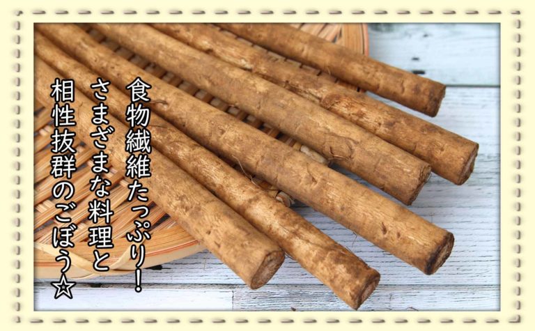 ごぼうは水溶性食物繊維のイヌリンや不溶性食物繊維のセルロースなどを豊富に含みます。これらの食物繊維は、腸内の善玉菌のエサとなって腸内環境を整える、便のカサを増して便通を良くする働きがあります。腸内環境を整える事は、体全体の調子を整える事にも繋がるので、とても大切です。
