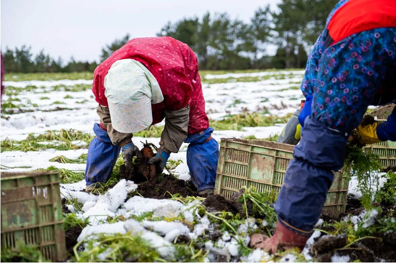 この地域以上に最低気温が低いと「にんじん」は凍ってしまい、温度が高いとこの味を引き出すことはできません。この地域以上に雪が積もると掘り取りが困難になるし、雪がないとこの味を引き出すことはできません。