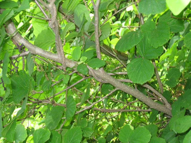 アケビ蔓にヘビ
