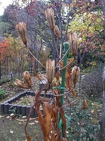 ヤマユリは花後に莢のような実をつけ、その中にたくさんの種を作ります。この種を土に播くことで株を増やせるのですが、花を咲かせるようになるまで時間がかかります。