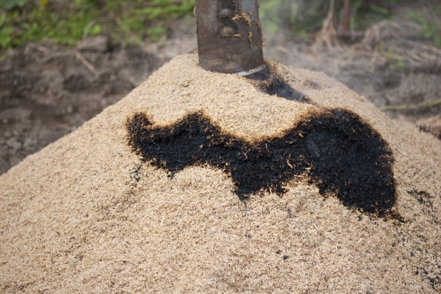 アブラムシはもみ殻くん炭の臭いを苦手としています。もみ殻くん炭を土に撒くことで、アブラムシなどの害虫を寄せ付けない効果があります。