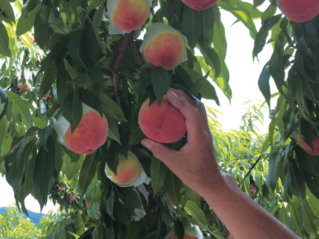 話しは少し変わりますが、スーパーなどで硬いアボカドや青いバナナを見たことはありませんか? あれはスーパーに並ぶ時にちょうど食べ頃になるよう、硬いうちに収穫したもの。それが早く到着してしまうと硬かったり、青かったりするのです。桃も同じで、ある段階を超えると急激に熟して傷んでしまうので、海外から来るアボカドやバナナほどではありませんが、スーパーに並ぶ頃を見計らって、白さが残る硬いうちに収穫しています。この収穫後の輸送中や倉庫で熟させることを追熟(ついじゅく)と言います。一般流通の桃は、3〜5日後に完熟を迎えるように収穫しますが、樹上完熟桃はなるべく樹に実らせてから収穫するところが違います。