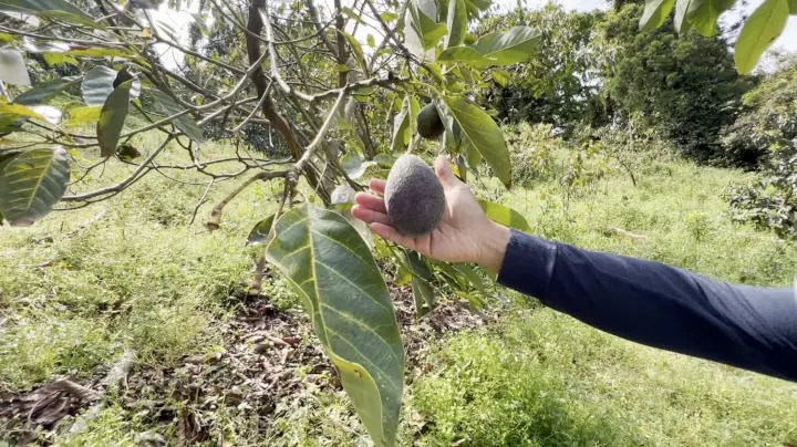 「除草剤などを一切使わずに、意識的に草を生やして、アボカド園地を草で覆うようにしている。草を刈るときも、ある程度高刈りをして5センチ程度は残す。このグランドカバーによる効果は大きいよ。例えば、地温の急激な変化を抑えるし、生態系を守り受粉虫などがすみやすいようにする。それに、土の流亡を防ぎ、木の転倒などを防いでくれる。僕ら人間も歩きやすくなるよ」
