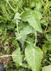 葉は蔓に対生し、長い葉柄を持ち、細長いハート形。