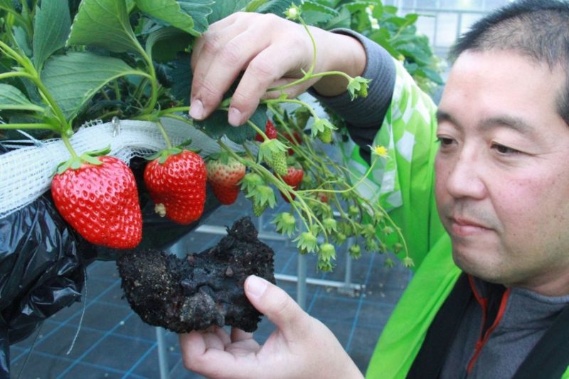 道の駅を運営する市の第三セクター「曙の里おく」(同市邑久町虫明)は「甘味の強いイチゴができて、お客さんの反応も良い。今後も順調に生育すれば、他の果物へ活用するとともに、ほかの農業者にも勧めて市の農業の盛り上げにつなげたい」とする。