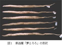 ジネンジョ新品種「夢とろろ」は炭疽病に強く、いもの肥大性に優れ、分岐等の奇形いもの発生が少ない晩生品種である。また,粘りが強く、香り、食味に優れる普及性の高い有望品種である。